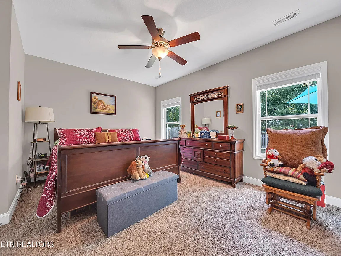 A Distinctive One-Level Retreat in Farragut on Nearly One Acre. Discover an extraordinary opportunity to own a meticulously renovated one-level residence, nestled on a private and sprawling 0.88-acre lot in the heart of Farragut. Impeccably appointed with countless modern upgrades, this exceptional home is a blend of elegance and functionality. This property boasts an impressive oversized three-car garage, an additional detached garage (1140 SF), and separate outbuilding (192 SF)—perfect for storage or hobbies. Inside, the home offers a thoughtfully designed layout featuring 4 spacious bedrooms, 3.5 beautifully updated bathrooms, and expansive living spaces, including a large dining area and a welcoming great room. The owner's suite is truly a retreat, showcasing an ensuite bathroom adorned with designer tiles, a dual-sink vanity, and a private walk-in closet. Secondary bedrooms provide generously sized with ample closet space. The inviting foyer, with its soaring 10-foot ceilings, creates a stunning first impression and offers ample space for personalization. A versatile bedroom off the foyer easily transitions into a functional home office or flex room. The chef's kitchen is the heart of the home, combining style and practicality. It features a cozy eat-in/ snack bar area, a cabinet-built pantry, gourmet appliances, painted cabinetry, a wooden vent hood, a tiled backsplash, and luxurious granite countertops. Hardwood flooring flows seamlessly throughout the primary living areas, including the owner's suite, mudroom, kitchen, and flex space, adding timeless appeal. Additional highlights include A rear screened porch with picturesque, wooded views—ideal for relaxation or entertaining. Professional landscaping with an irrigation system and stunning landscape lighting. Pull-down stairs in the attached garage lead to 475 square feet of additional attic storage. Fully encapsulated crawl space for enhanced performance and energy efficiency. Charming Casement windows throughout. This is not just a home—it's a lifestyle waiting to be embraced. Don't miss this rare chance to own an unparalleled property in a premier location.